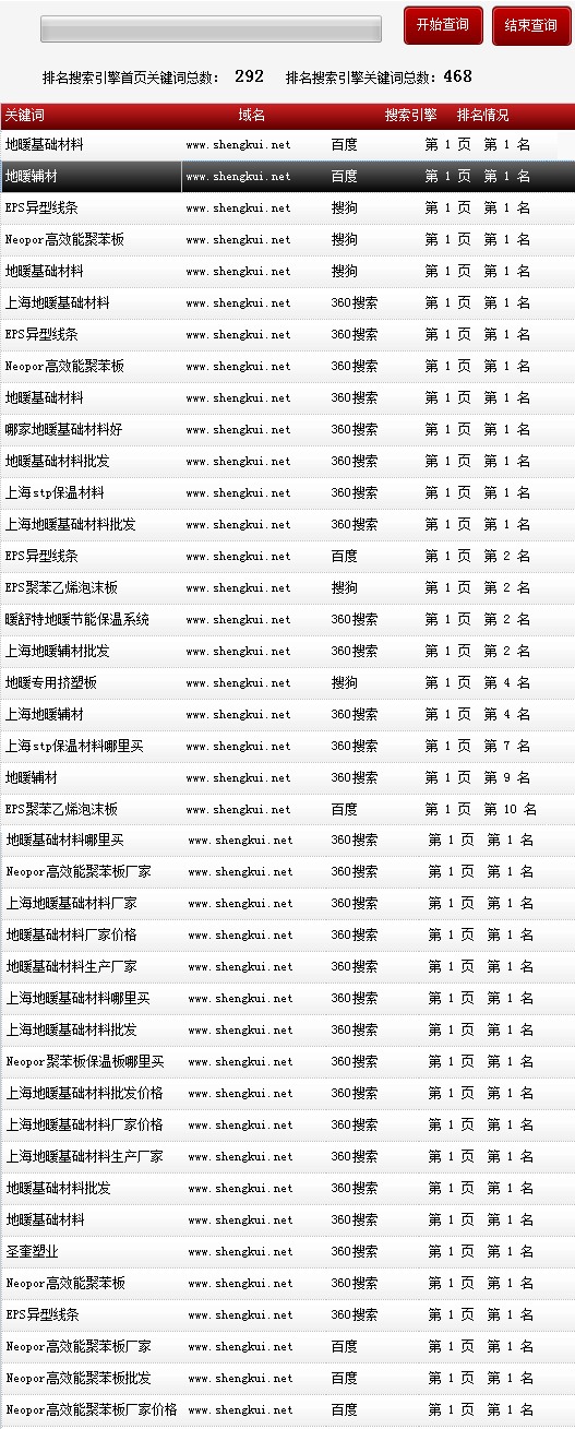 關(guān)鍵詞在各大搜索引擎排名情況: