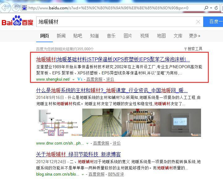 關(guān)鍵詞“地暖輔材”在百度排名:第1頁第1名