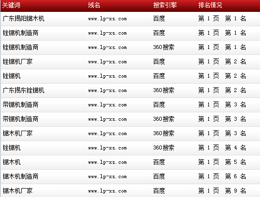 關(guān)鍵詞在各大搜索引擎排名情況: