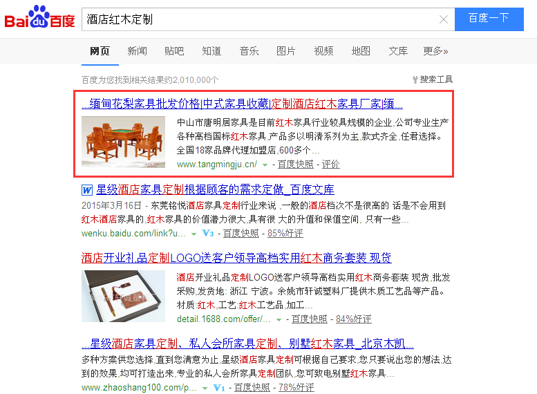 “酒店紅木定制”百度第一頁第一名: