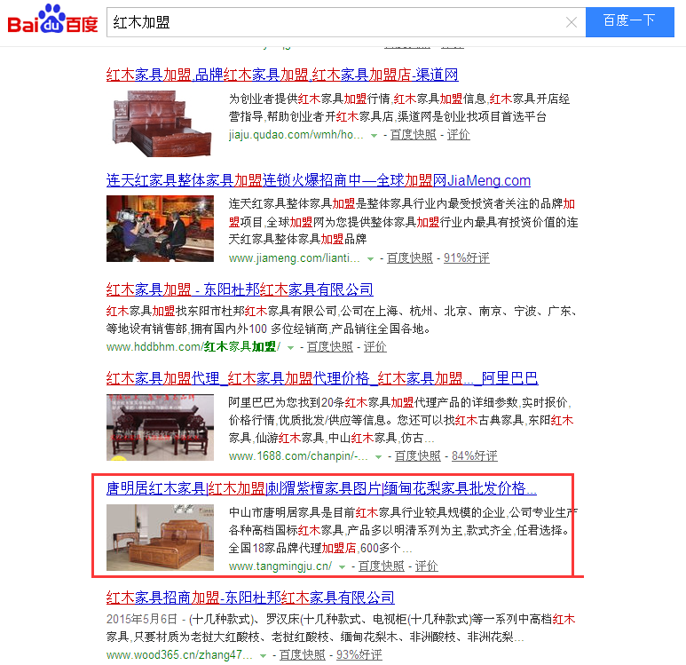 “紅木加盟”百度第一頁第八名: