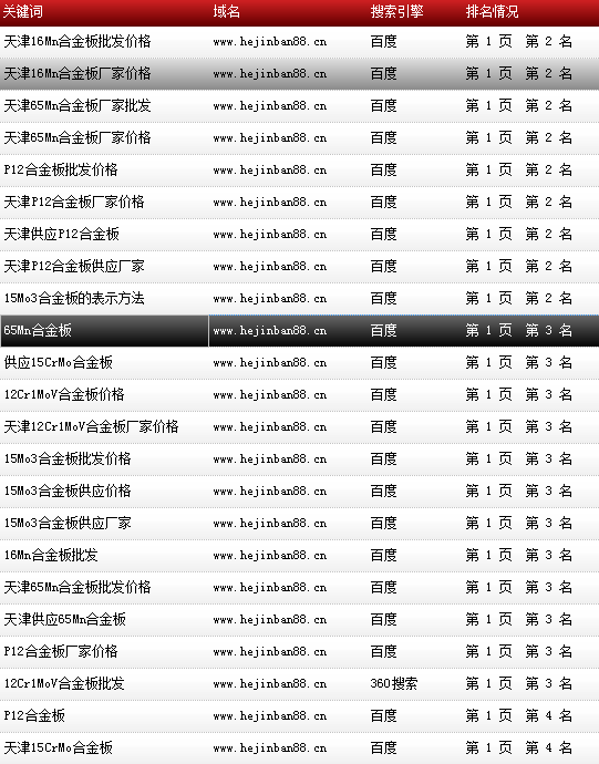 關(guān)鍵詞“P11合金板”在百度排名:第一頁第一名!