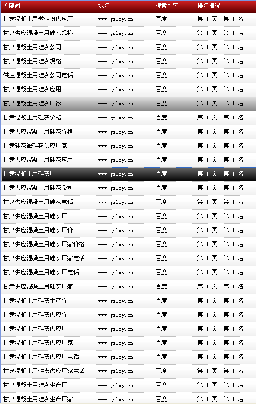 關(guān)鍵詞“甘肅硅灰微硅粉”在百度排名:首頁(yè)第1名