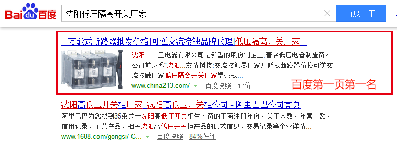 關(guān)鍵詞“沈陽低壓隔離開關(guān)廠家”在百度排名:第1頁第1名