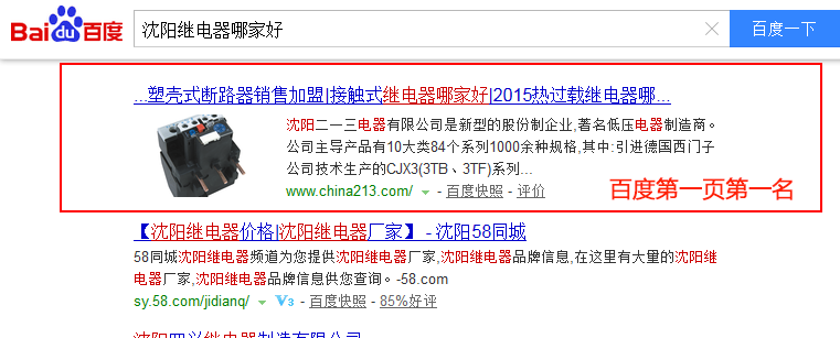 關(guān)鍵詞“沈陽繼電器哪家好”在百度排名:第1頁第1名