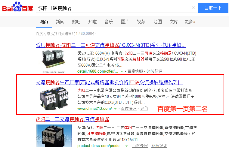 關(guān)鍵詞“沈陽可逆接觸器”在百度排名:第1頁第2名